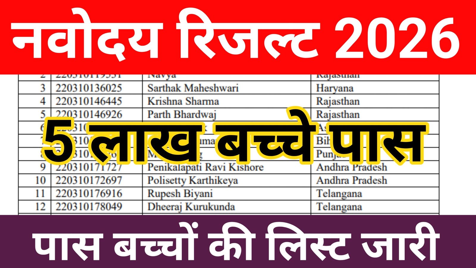 Jawahar Navodaya Vidyalaya Selection Test (JNVST) Class 6 Result 2026 is expected to be released in March 2026 for Phase-1 exam students. The result will be published online on the official Navodaya website once the answer sheet evaluation process is completed.